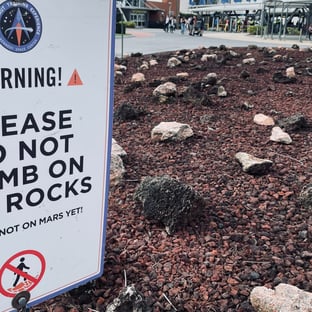 Man kann auch einen original Mondstein anfassen. Und der Commerz kommt auch nicht zu kurz. Gegen die üblichen Gebühren kann man sich einen "Raumanzug" überziehen und sich dann fotografieren lassen. Sehr schön. Mach ich zu Hause mit einen Malerüberzug aus dem Baumarkt dann auch.
