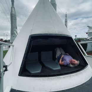 Erst mal schauen wir uns die Raketen außen an. Erstaunlich wie klein die erste bemannte Rakete der Amerikaner war. Auch die Kapsel in der Shephard flog, war nichts für Platzangst. Wir haben es erst gar nicht ersucht, da rein zu klettern, zuschauen wie es Andere machen, kann eben auch genug sein. Birgit ist immerhin in die Apollokapsel geklettert.