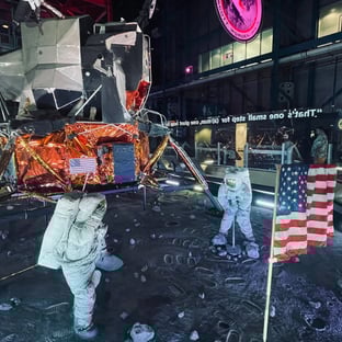 Am Ende der Tour landet man dann bei der Halle für die Apollo Mission. Also dann mal los auf den Mond. Das Ganz startet wieder mit einer Show. Diesmal ist man im Kontrollzentrum beim Start der Apollo-Rakete dabei. Auch wieder imposant gemacht. Beim Start wackelt die ganze Halle und die Bänke zittern... und die Lautstärke erwähne ich jetzt nicht mehr.