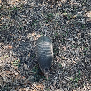 Im zweiten Teil des Parks sollte man nun endlich ein Krokodil sehen können, da müssen wir nun doch noch hin. Warnschilder lassen ja nach meiner Theorie nichts Gutes hinsichtlich der Sichtung versprechen, aber doch auf der anderen Seite des Tümpels liegt einer. Unser erster Alligator! Wir haben gelernt, das es Alligatoren sind, Krokodile leben in Salzwasser. Hier in Florida gibt es fast nur Alligatoren und es sind immer Süßwassertümpel. Schildkröten haben wir nicht gesehen. Ist wohl auch nicht ihre Zeit jetzt im Januar. Dafür lief uns noch ein Gürteltier über den Weg. Das nächste urzeitliche Vieh.