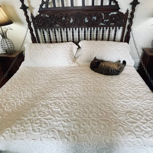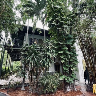 Das Hemingway Haus hat uns sehr gefallen. Dort laufen viele Katzen frei rum. Angeblich alles Nachfahren der Katze, die Hemingway mitbrachte. Besonderheit ist, dass die Katzen 6 Zehen haben. Allerdings haben sich vermutlich auch Nachbarskatzen gemischt, ich hab nicht bei allen Katzen die zusätzliche Zehe entdecken können. Sonst sind die Tiere aber recht phlegmatisch und zeigen den Unmengen von Besuchern, wer hier eigentlich residiert. Katzen eben! Es gibt mal wieder Unmengen von Verbotsschildern, dass die Katzen nicht hochgehoben werden dürfen. Wenn sie zu einen kommen ist es ok. Am besten hat mir die Katze auf dem Bett gefallen. Sie muss die Königin sein. Die Katzen haben auch einen eigenen Friedhof und tragen Namen von Berühmtheiten. Abgesehen davon wurde das Haus so belassen, wie es zu Hemingways Zeiten war. Auch das Schreibzimmer im Nebengebäude (natürlich mit Katzen) kann man sich anschauen. Schöne Geschichte gibt es auch zum Pool. Seine Frau wollte einen Pool und damit es schneller geht, wollte sie den mit Dynamit in die Felsen sprengen, was sie aber nicht durfte. Darauf hin mussten sie die Grube mit der Hammer und Hacke buddeln. Das Ding wurde dadurch wohl extrem teuer und der gute Hemingway war bei seiner Rückkehr wohl alles andere als begeistert...