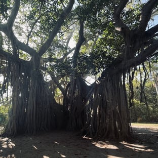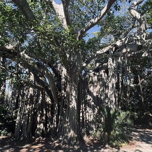 Der Statepark in Ft. Lauderdale liegt eigentlich mitten in der Stadt. Hat aber einen sehr schönen, wenn auch vollen Strand. Bemerkenswert war ein riesiger Banyan-Baum. Einen habe wir ja schon bei den Manatees gesehen, aber der hier ist noch größer. Die Wurzel wachsen durch die Luft in die Erde.