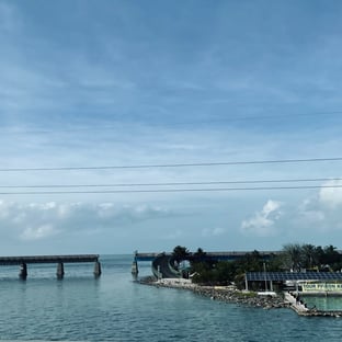 Wenn man bedenkt, dass hier vor 120 Jahren fast nichts war, ist es schon beeindruckend insbesondere den Highway zu sehen. Erst wurde eine Eisenbahn gebaut. Die Brücken stehen mehr oder weniger noch. Heute sind es meist Fuß- und Radwege von denen meist geangelt wird. Daneben wurde dann in den 30-ziger Jahren der Highway gebaut und die Eisenbahnstrecke verfiel. Wasser und Strom, wie wir es kennen, gab es erst nach Ende des 2. Weltkrieges. Hier mal ein Eindruck von der 7-Miles-Bridge (man kommt nicht drauf wie lang die ist, oder?)