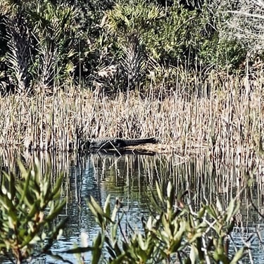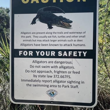 Im zweiten Teil des Parks sollte man nun endlich ein Krokodil sehen können, da müssen wir nun doch noch hin. Warnschilder lassen ja nach meiner Theorie nichts Gutes hinsichtlich der Sichtung versprechen, aber doch auf der anderen Seite des Tümpels liegt einer. Unser erster Alligator! Wir haben gelernt, das es Alligatoren sind, Krokodile leben in Salzwasser. Hier in Florida gibt es fast nur Alligatoren und es sind immer Süßwassertümpel. Schildkröten haben wir nicht gesehen. Ist wohl auch nicht ihre Zeit jetzt im Januar. Dafür lief uns noch ein Gürteltier über den Weg. Das nächste urzeitliche Vieh.