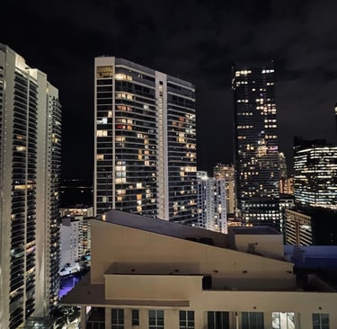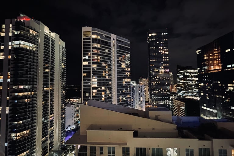 Die ganze Warterei hatte den Vorteil, dass die Rushhour vorbei war und wir gut in Downtown ankamen. Dort noch ein kleiner Kampf mit den Schlüsselautomaten und den Concierge (uns war nicht so klar, dass englisch nicht unbedingt die Hauptsprache in Miami ist). Dann das Auto in den 11 Stock zum Parken fahren und ins Appartment im 33. Stock.