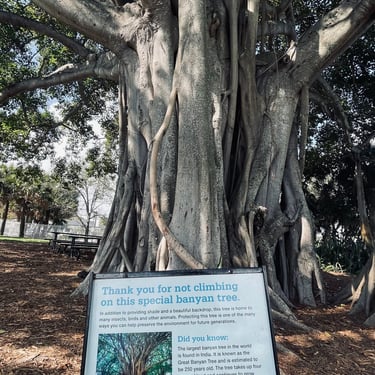 Der Statepark in Ft. Lauderdale liegt eigentlich mitten in der Stadt. Hat aber einen sehr schönen, wenn auch vollen Strand. Bemerkenswert war ein riesiger Banyan-Baum. Einen habe wir ja schon bei den Manatees gesehen, aber der hier ist noch größer. Die Wurzel wachsen durch die Luft in die Erde.