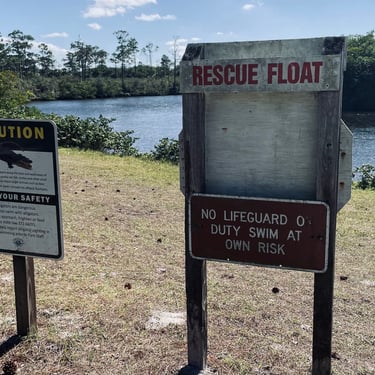 Der Park ist sehr groß. Beginnt mit der größten Düne von Florida. Ein bisschen Nordsee hier, nur in warm! Wenn man weiter in den Park fährt kann man wieder wunderbar durch "Urwälder der Everglades" wandern. An einen Fluß gibt es auch eine Badestelle. Wir wissen nicht, was uns mehr beunruhigt. Das es keinen Bademeister gibt oder das dort Alligatoren rumschwimmen. Wir werden amerikanisch und verzichten auf das Bad.